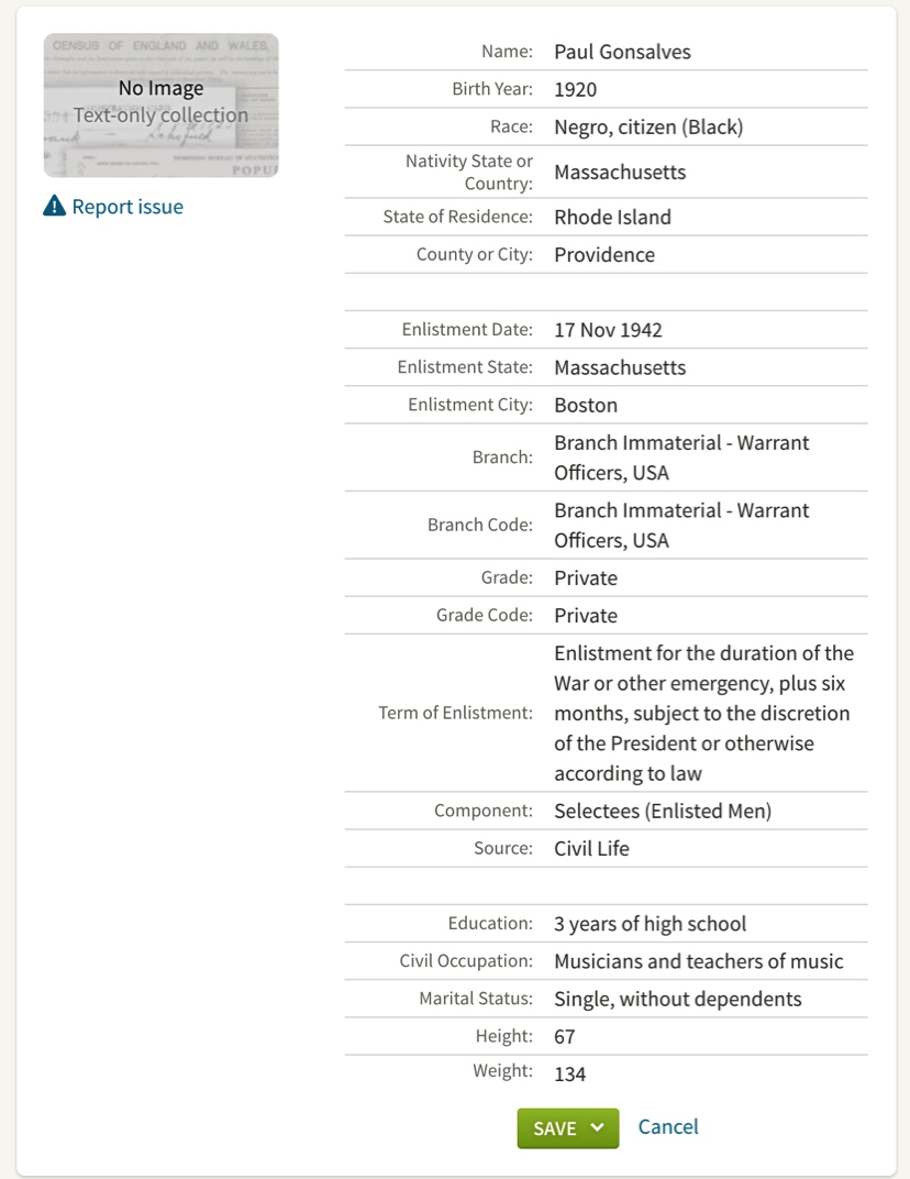 Paul Gonsalves is buried at the Long Island National Cemetry, New York, Plot 2N 3731.